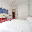 This spacious three-bedroom, two-bathroom home comfortably accommodates up to six guests. It features a fully equipped separate kitchen, a bright living room, and a dedicated dining area – ideal for gathering over meals after a day in the city. One bathroom has a bathtub, perfect for a relaxing soak, while the second offers a practical walk-in shower.