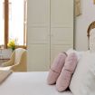 The TreasureRome Boheme apartment, meticulously adorned by a renowned Roman architect, was envisioned for hosting esteemed individuals. It comprises two double bedrooms, one of which with an en-suite bathroom, along with a third bedroom featuring two comfortable single beds. This elegant space is designed to offer the utmost comfort to our valued guests with modern amenities, including Wi-Fi, a soothing bathtub, and efficient air conditioning.