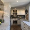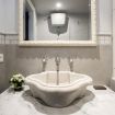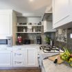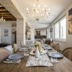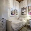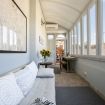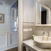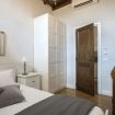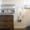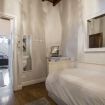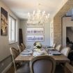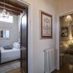 The owner of the apartment Michele, is an artist and architect, designed and coordinated the renovation of the apartment herself. Completely restructured, it is filled with carefully-sourced vintage pieces that have been refurbished in a modern aesthetic. The exposed brick wall frames an incredible view from the chic livingroom through the dining area, and beyond, the rooftops of via Margutta.